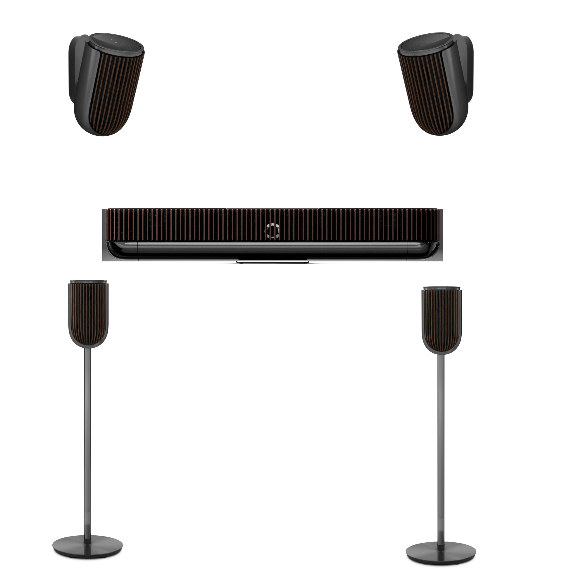 Beolab 8In diesem Setup fungieren die vier Beolab 8 als präzise Surround- und Rear-Satelliten, die durch ihre Beam Width Control ein lückenloses, dreidimensionales Klangfeld um Ihre Sitzposition weben und so die immense Kraft der Beosound Theatre zu einem vollendeten 360-Grad-Kinoerlebnis erweitern.